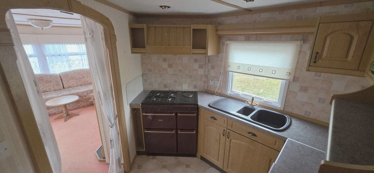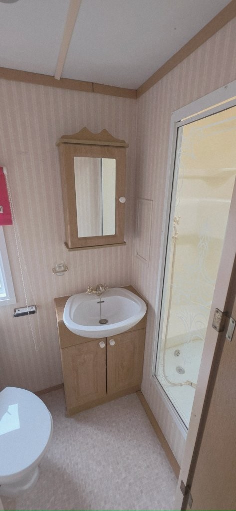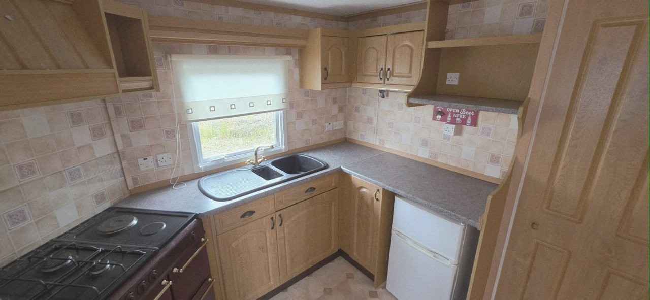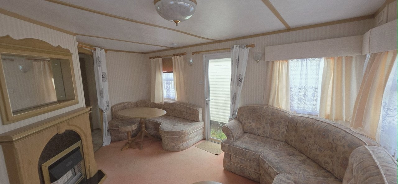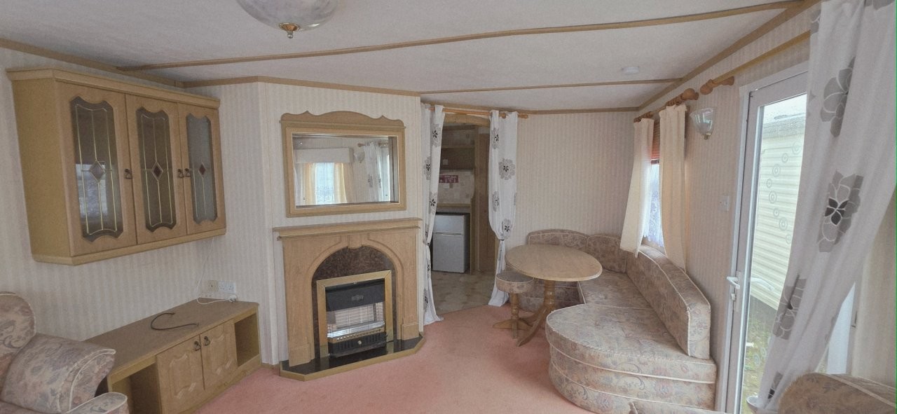 Całoroczny domek mobilny, dwupokojowy, na kołach w bardzo dobrym stanie. W salonie kanapa z rozkładanym łóżkiem i kominkiem gazowym, stół kuchenny. Jedna 2-osobowa sypialnia z łózkami pojedynczymi, druga sypialnia z podwójnym łóżkiem. Łazienka i ubikacje.