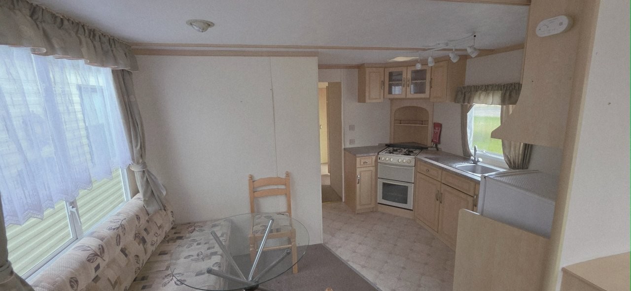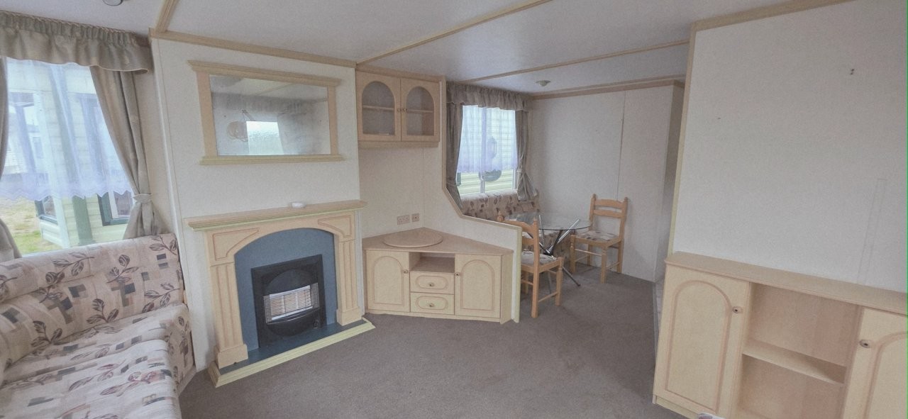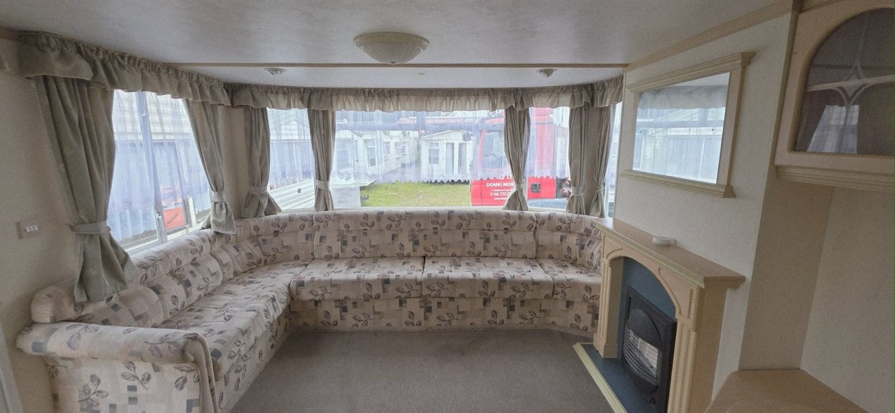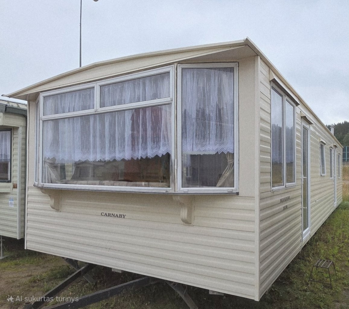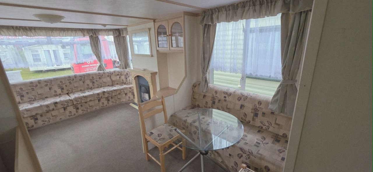 Trzypokojowy domek na kołach w bardzo dobrym stanie. W salonie kanapa z rozkładanym łóżkiem i kominkiem gazowym, stół kuchenny. Dwie 2-osobowe sypialni z łózkami pojedynczymi, jedna sypialnia z podwójnym łóżkiem. Łazienka i dwie ubikacje.