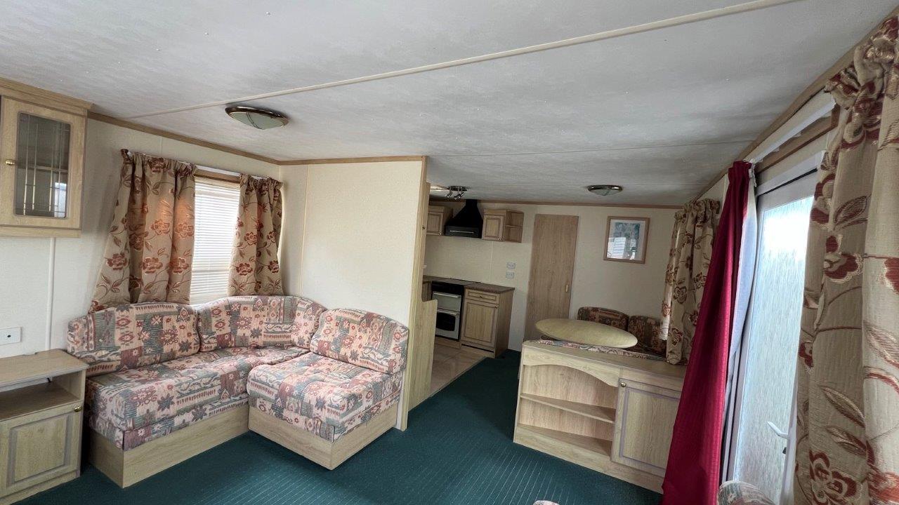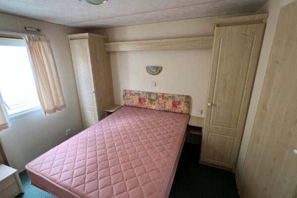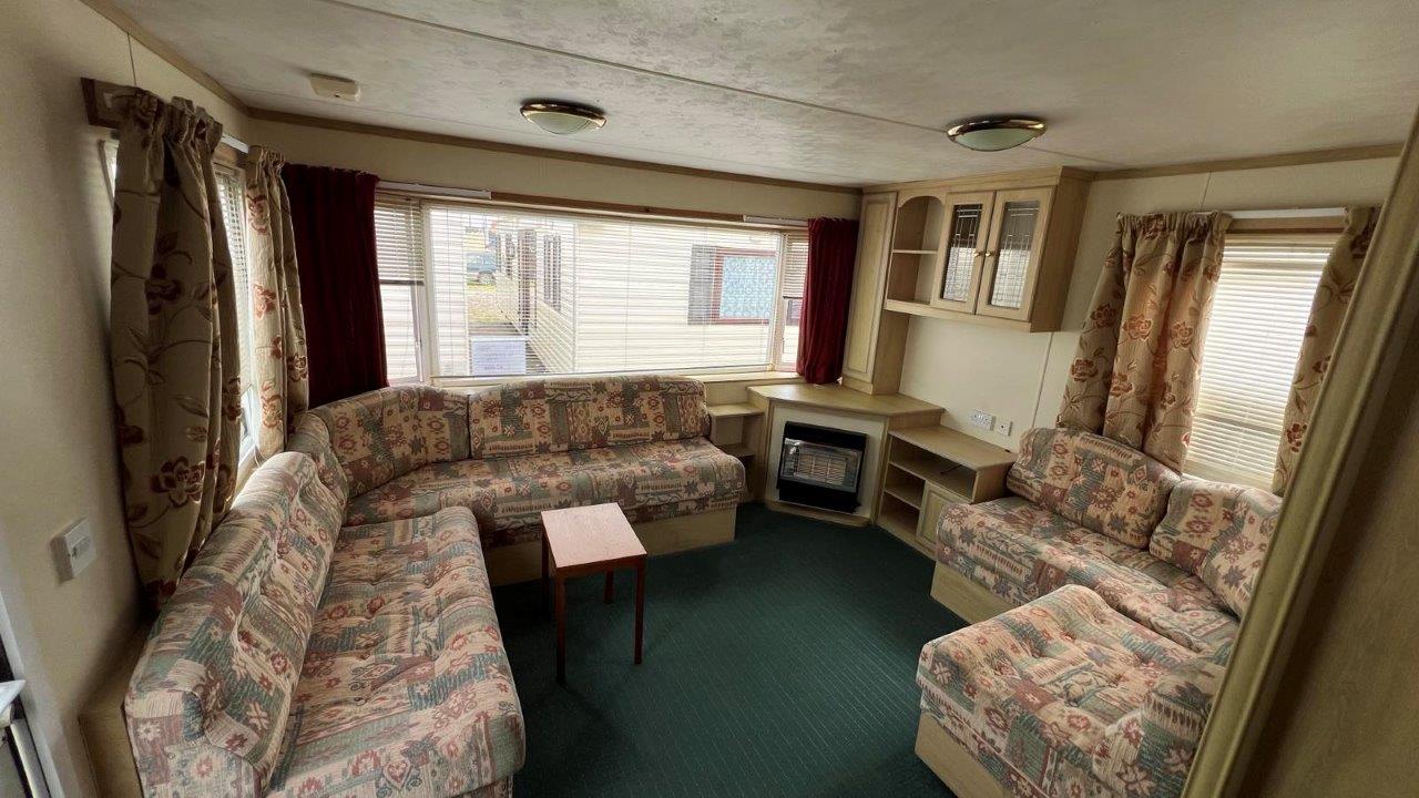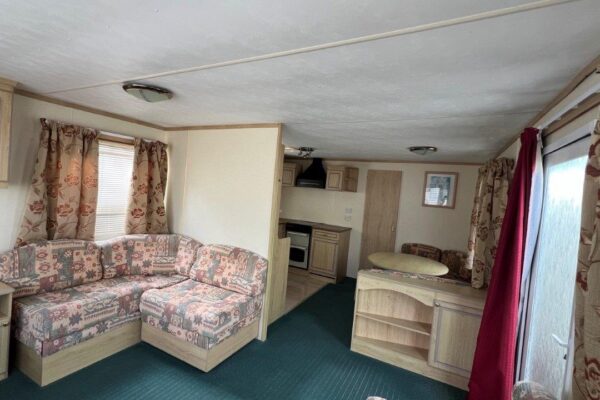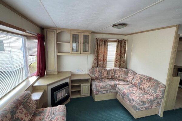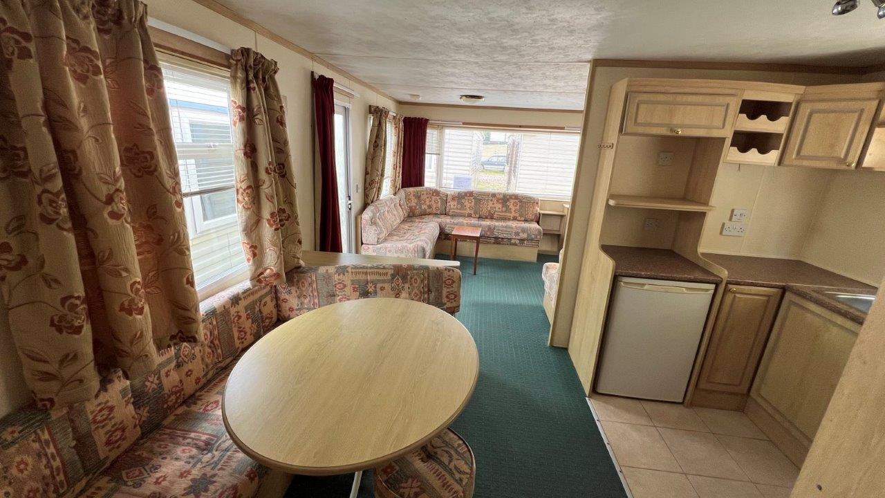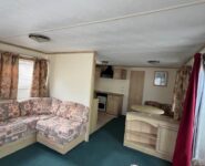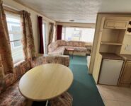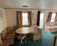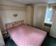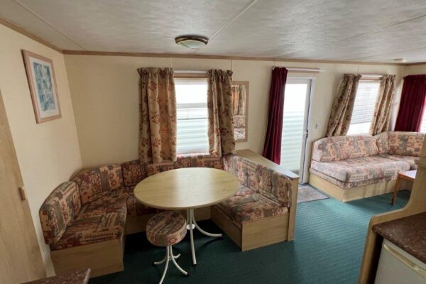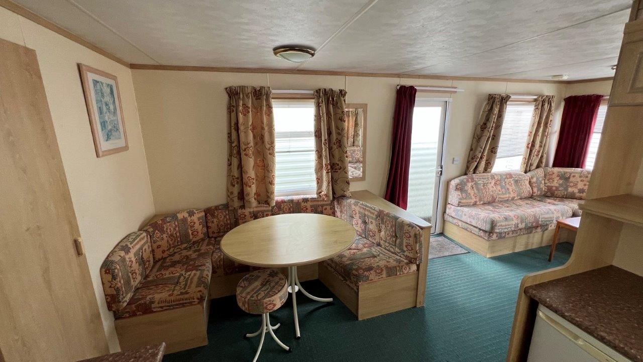 Dwupokojowy domek mobilny na kołach w bardzo dobrym stanie.W salonie kanapa z rozkładanym łóżkiem i kominkiem gazowym i stół kuchenny. Jedna 2-osobowa sypialnia z łózkami pojedynczymi, druga sypialnia z podwójnym łóżkiem. Łazienka i dwie ubikacje.