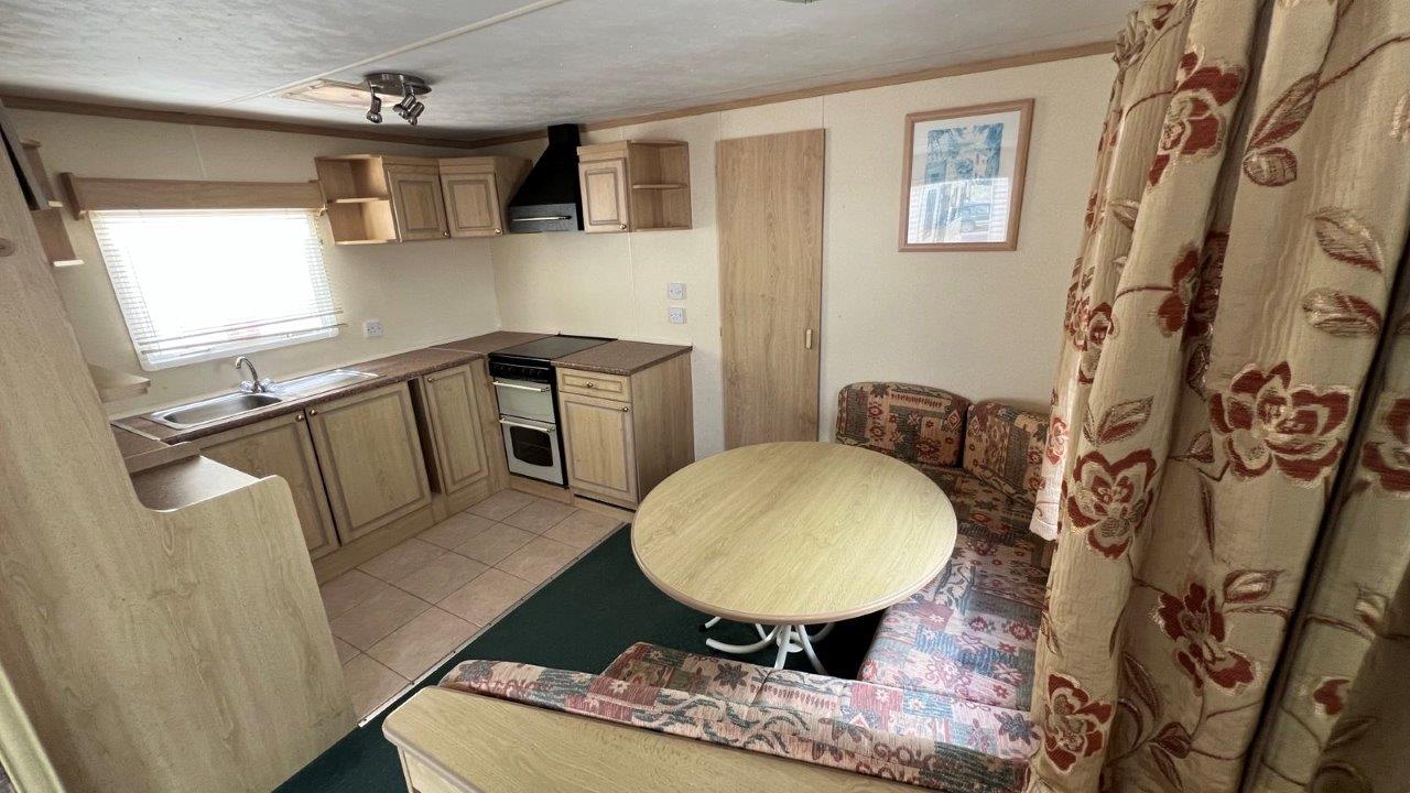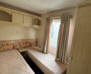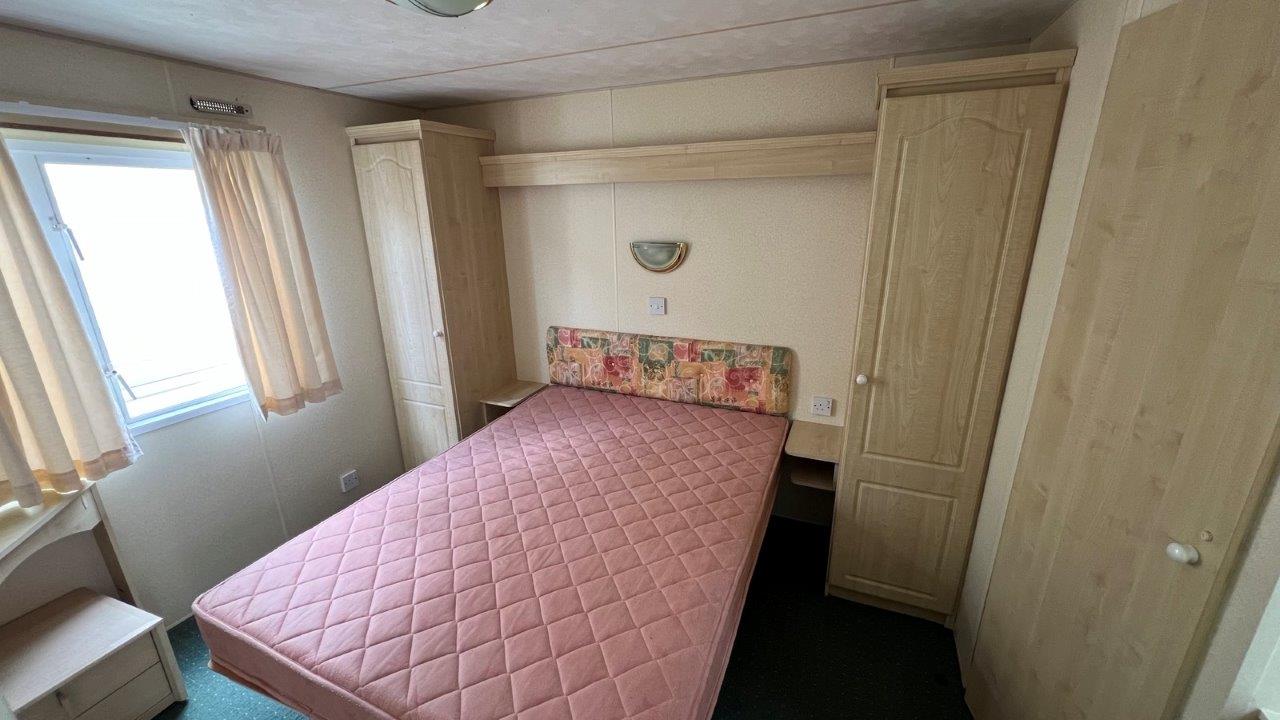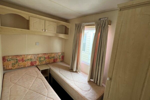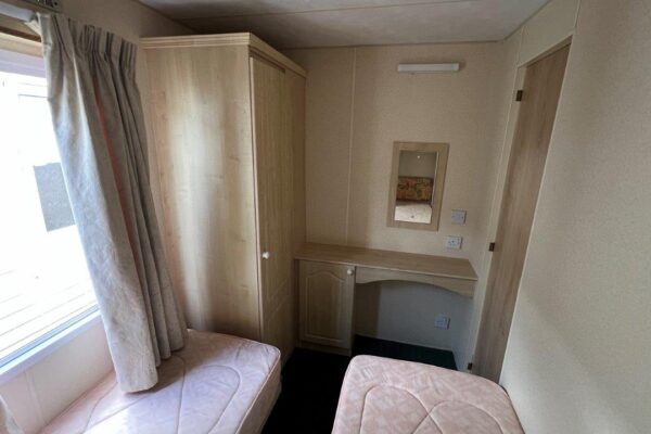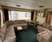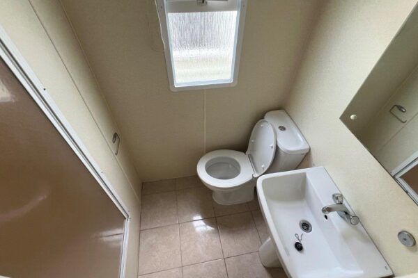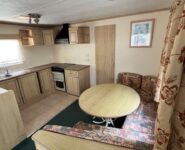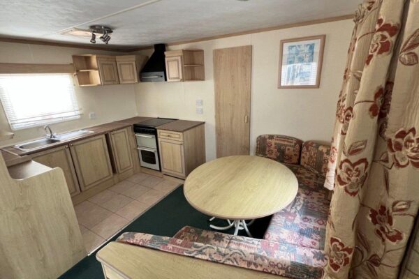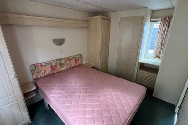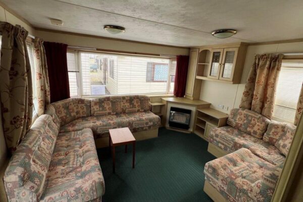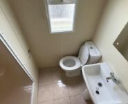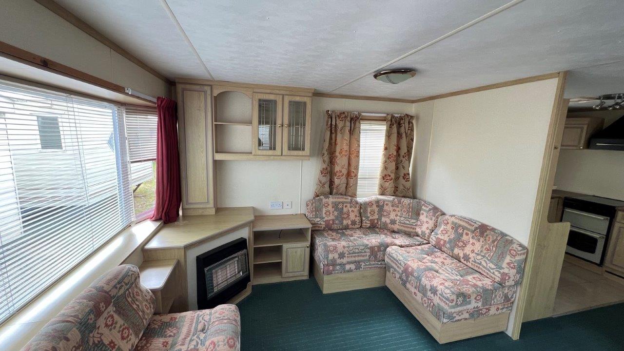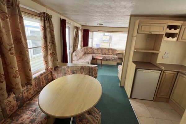 Dwupokojowy domek mobilny na kołach w bardzo dobrym stanie.W salonie kanapa z rozkładanym łóżkiem i kominkiem gazowym i stół kuchenny. Jedna 2-osobowa sypialnia z łózkami pojedynczymi, druga sypialnia z podwójnym łóżkiem. Łazienka i dwie ubikacje.