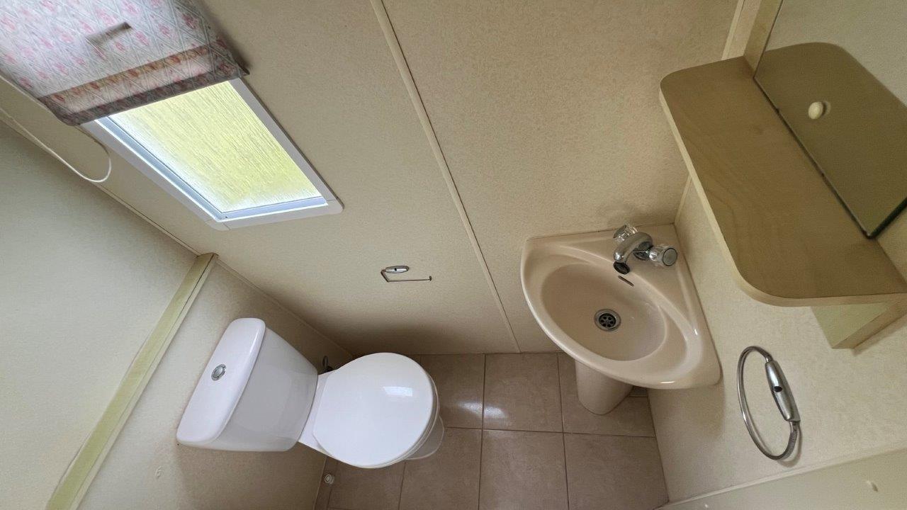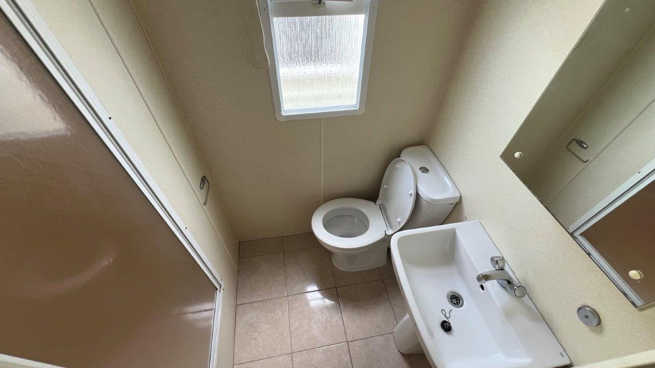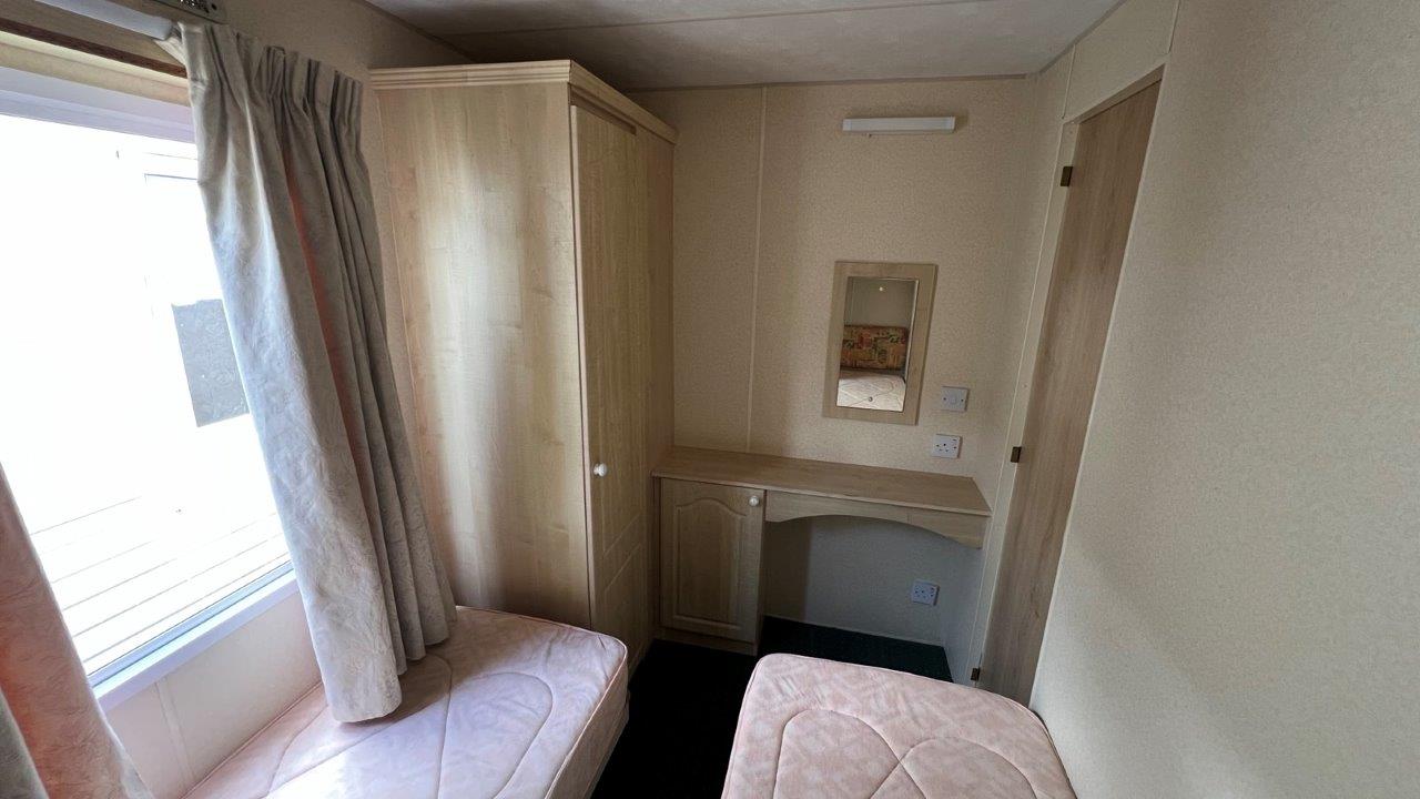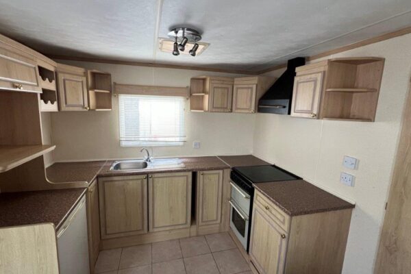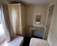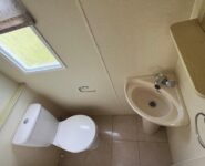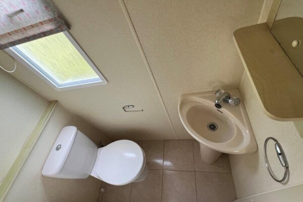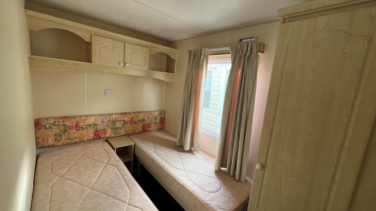 Dwupokojowy domek mobilny na kołach w bardzo dobrym stanie.W salonie kanapa z rozkładanym łóżkiem i kominkiem gazowym i stół kuchenny. Jedna 2-osobowa sypialnia z łózkami pojedynczymi, druga sypialnia z podwójnym łóżkiem. Łazienka i dwie ubikacje.