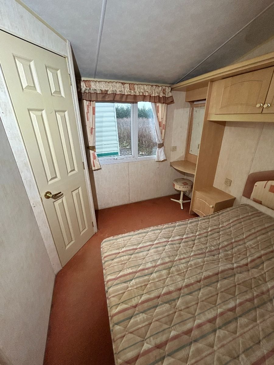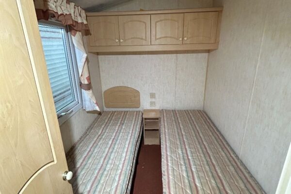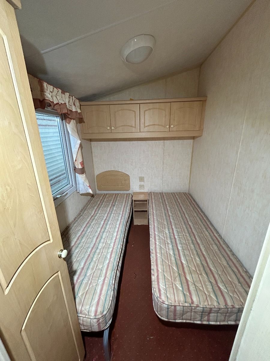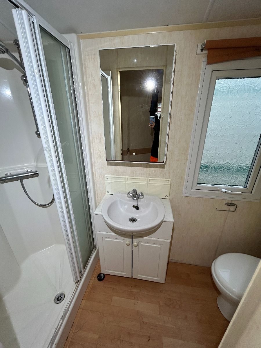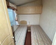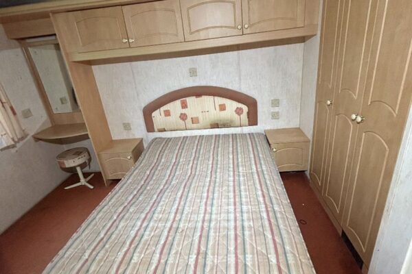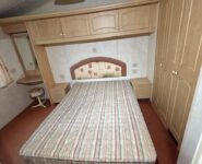 Całoroczny domek mobilny dwupokojowy na kołach w bardzo dobrym stanie. W salonie kanapa z rozkładanym łóżkiem i kominkiem gazowym, stół kuchenny. Jedna 2-osobowa sypialnia z łózkami pojedynczymi, druga sypialnia z podwójnym łóżkiem. Łazienka i ubikacje.