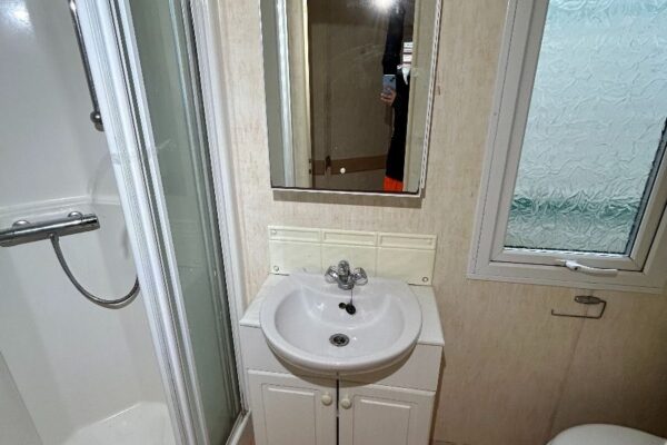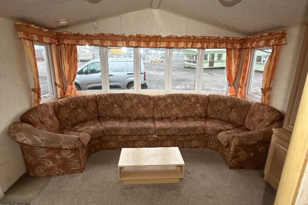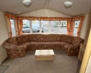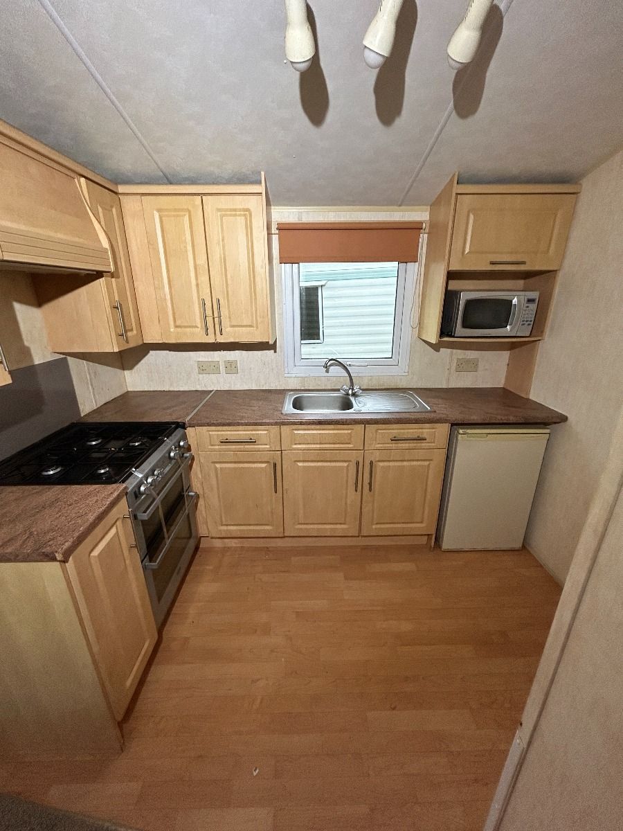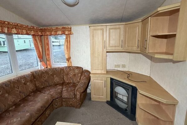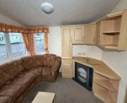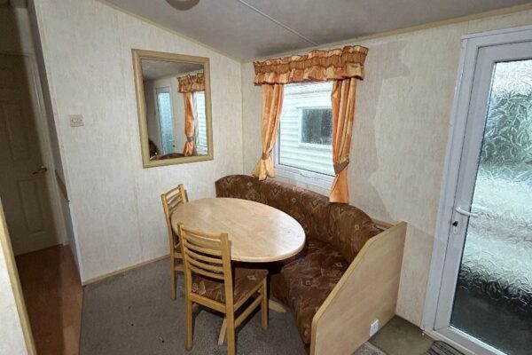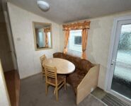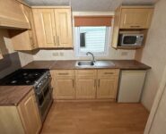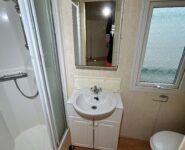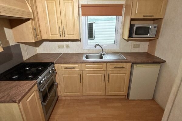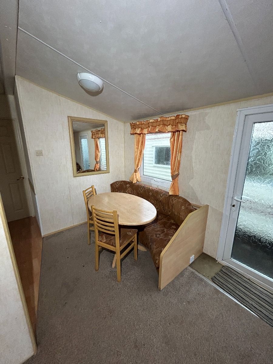 Całoroczny domek mobilny dwupokojowy na kołach w bardzo dobrym stanie. W salonie kanapa z rozkładanym łóżkiem i kominkiem gazowym, stół kuchenny. Jedna 2-osobowa sypialnia z łózkami pojedynczymi, druga sypialnia z podwójnym łóżkiem. Łazienka i ubikacje.