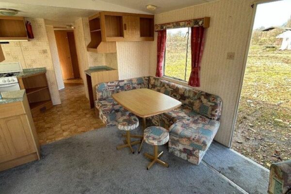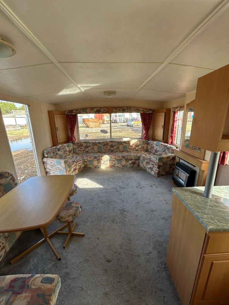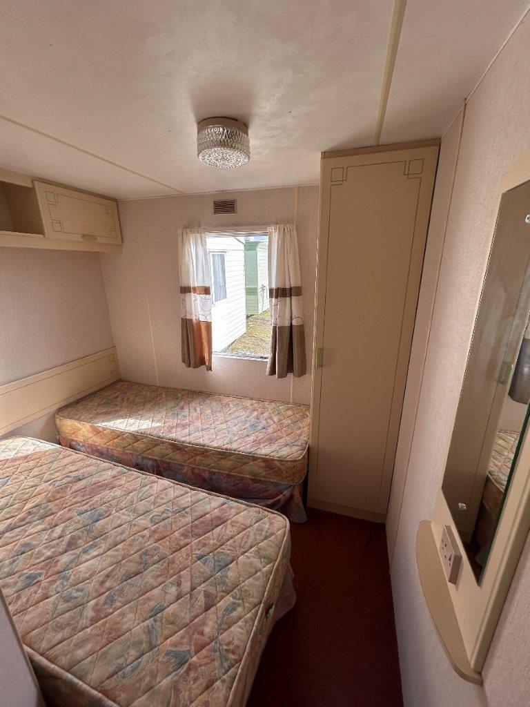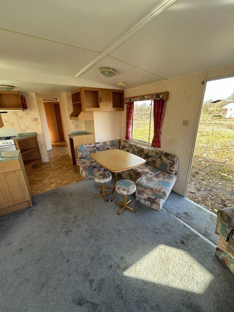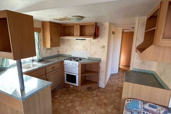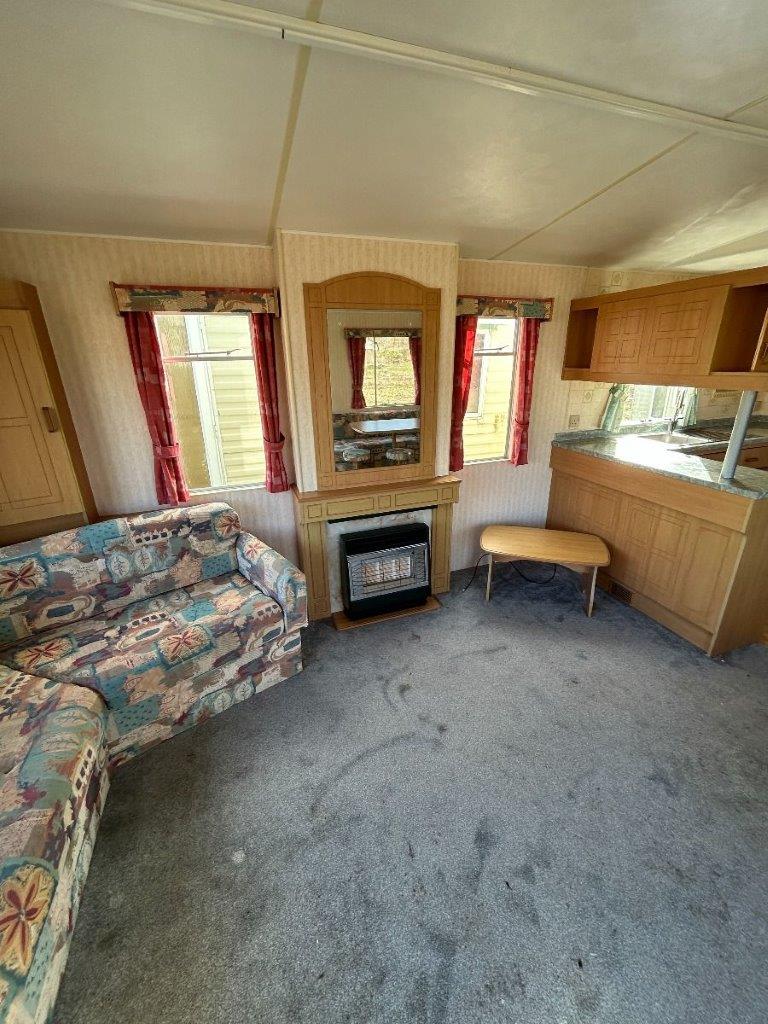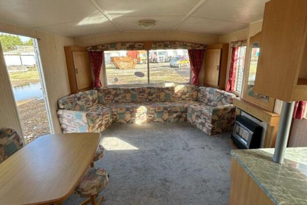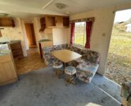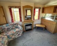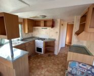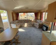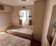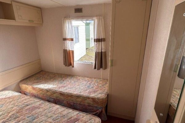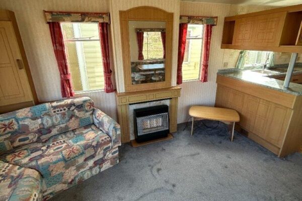 Trzypokojowy domek mobilny na kołach w bardzo dobrym stanie.W salonie kanapa z rozkładanym łóżkiem i kominkiem gazowym. Dwie 2-osobowe sypialni z łózkami pojedynczymi, jedna sypialnia z podwójnym łóżkiem. Łazienka i ubikacje.